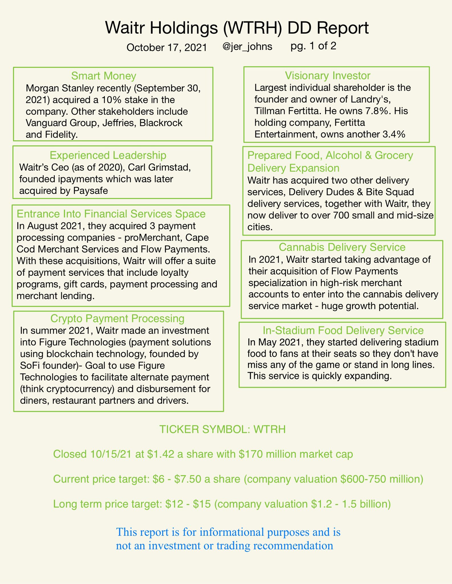 Waitr Holdings Inc. Their WTRH share price forecasts range from 200 to 200. With the third-quarter round of 13F filings behind us it is time to take a look at the stocks in which some of the best money managers in the world preferred to invest or sell.
