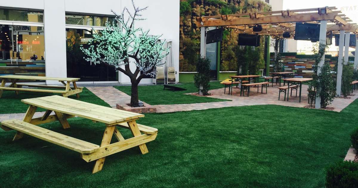 Located right on The Strip and within walking distance of the Allegiant stadium The Fan. The 13 Best Beer Gardens in Las Vegas. Bier Gartens unique outdoor dining area in front of the Plaza Hotel Casino features nearly 3000 square feet of real grass along with specially designed wooden trellises.